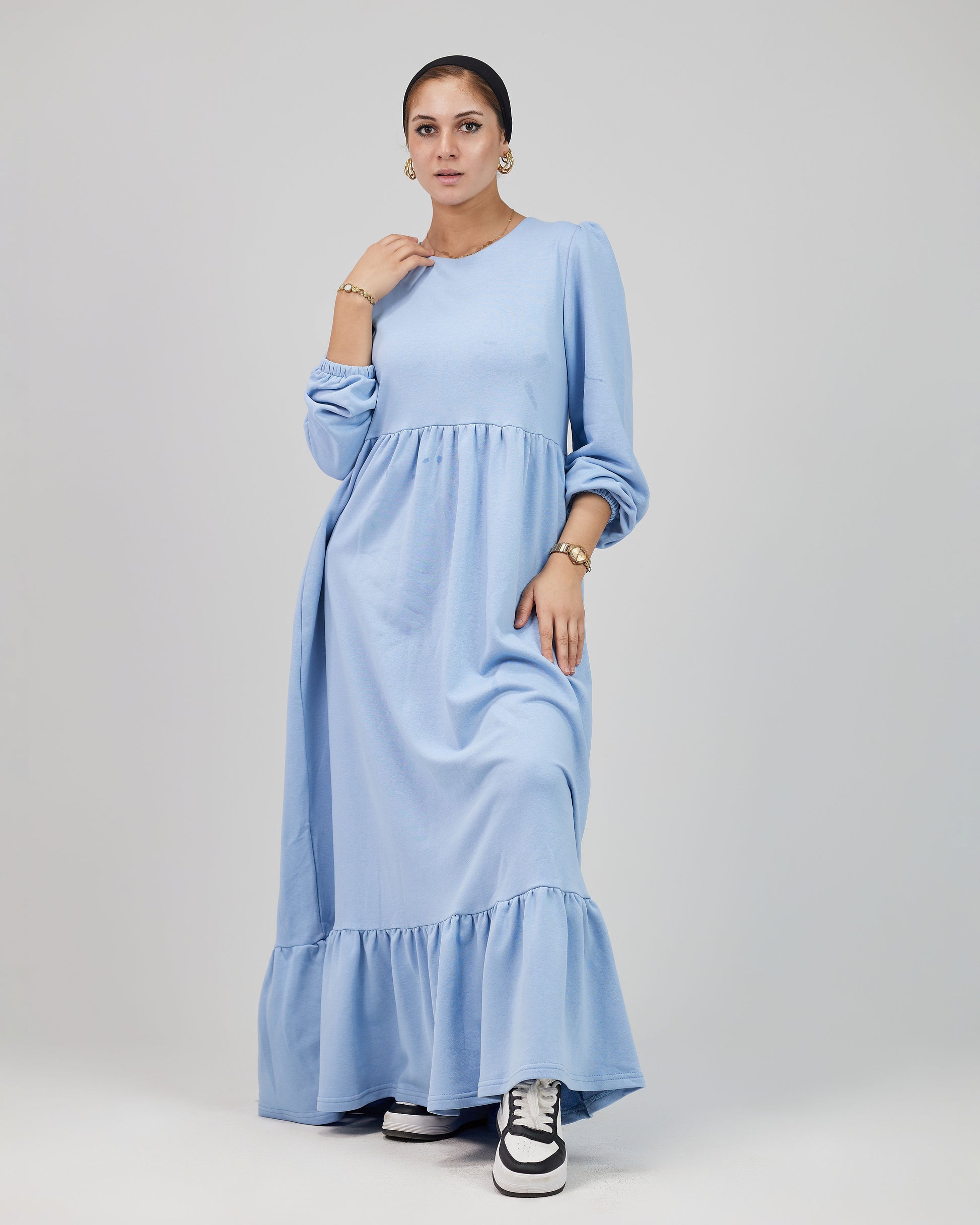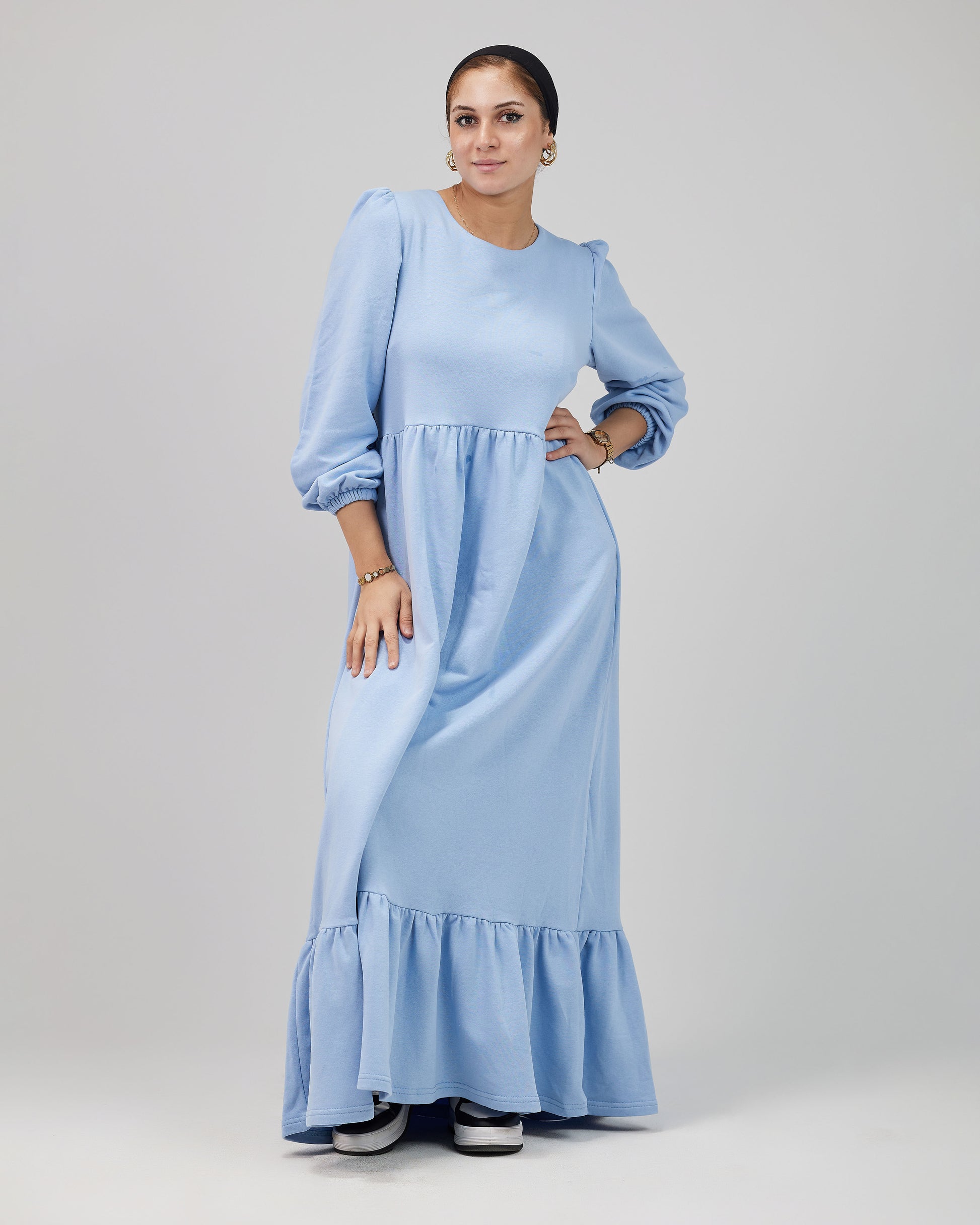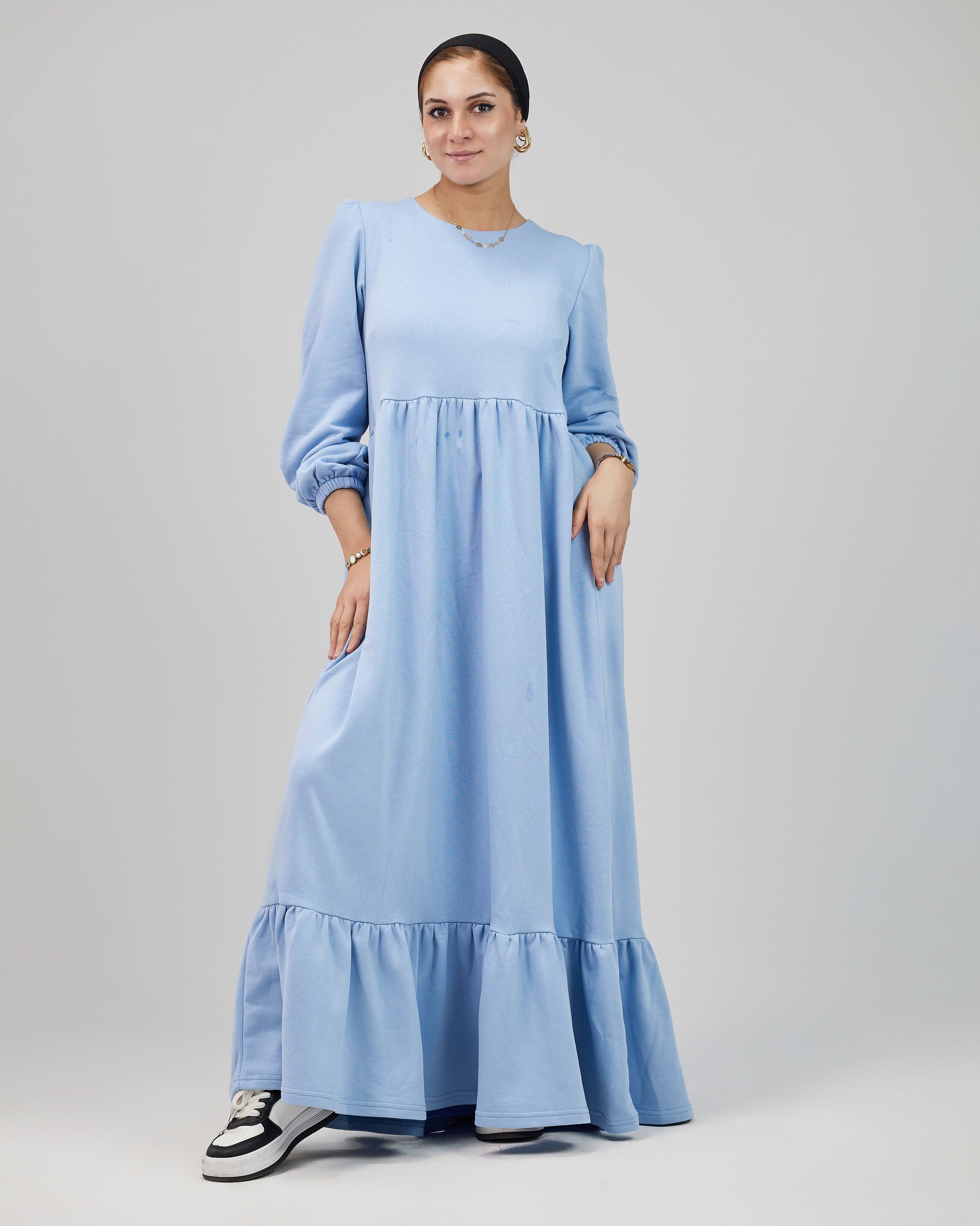 وفرنالك فستان بسيط وشيك في نفس الوقت، بخامة مناسبة للأجواء الشتوية ❄️❄️